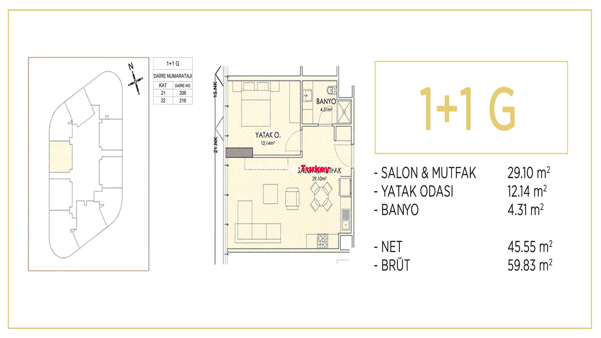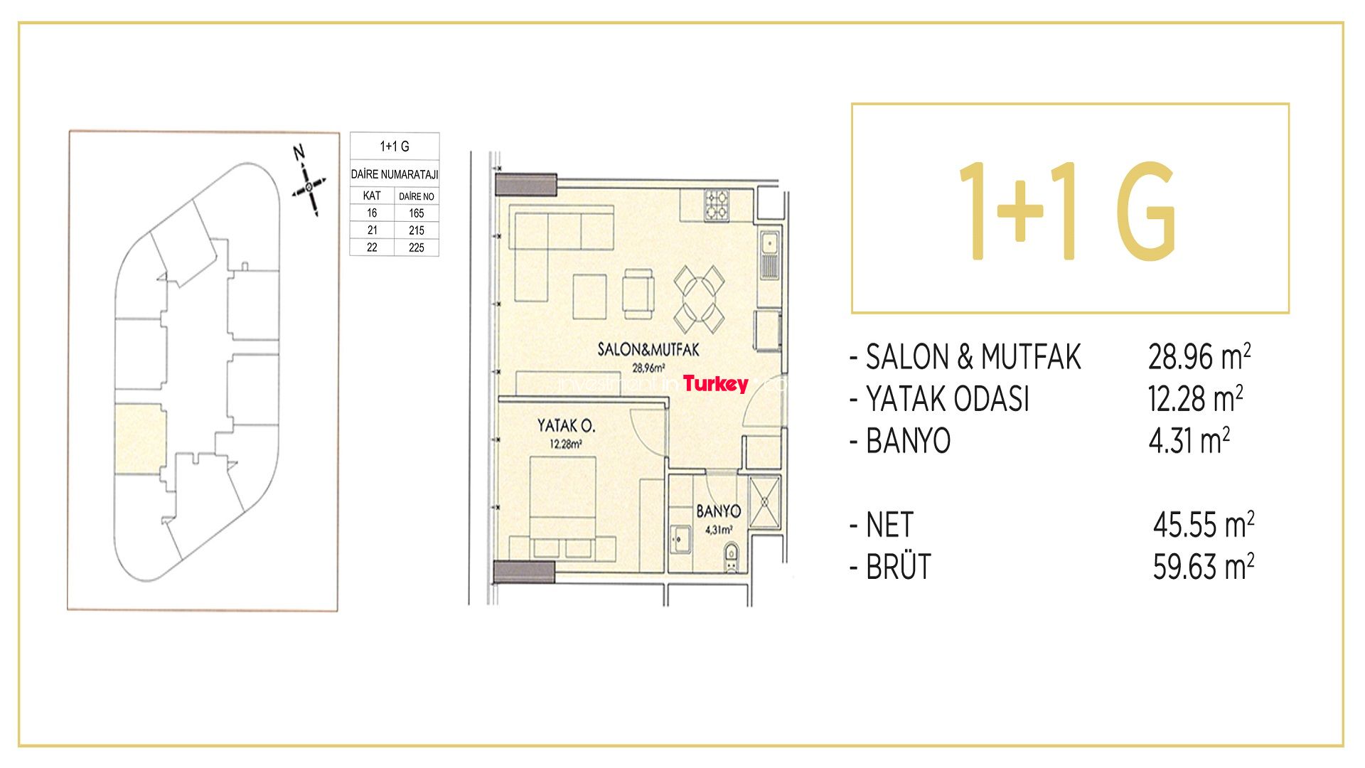 High-quality materials were used in the project consisting of 4 blocks and 830 houses built on an area of 16.00m2. The project, which was designed with a simple and elegant understanding befitting the quality of the material, gained a new dimension with the attention paid to details. In addition to its design that evokes a feeling of spaciousness, the project, which allows you to wake up to joyful mornings with its large windows that spread sunlight to every corner of the house, will offer you a quality life. If you want to be the owner of one of the high-end quality apartments suitable for Turkish citizenship, which you can choose from 1 + 1 to 3 + 1 according to your needs, do not stop, apply immediately. Experience the quality you deserve.
