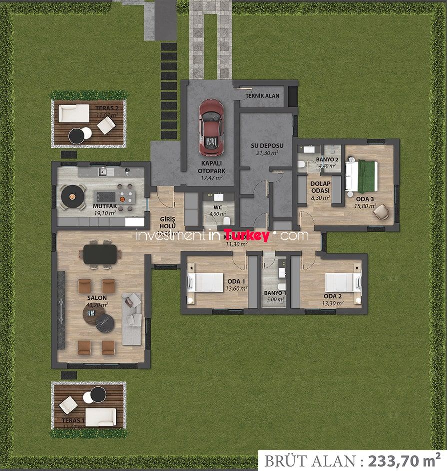 8 different Villa types from 3+1 to 5,5+2: depends on buyers need.