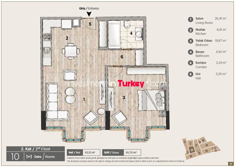 The project includes studio (1+0), 1+1, 2+1, 3+1, 4+1, 5+1 types of apartments and offices.