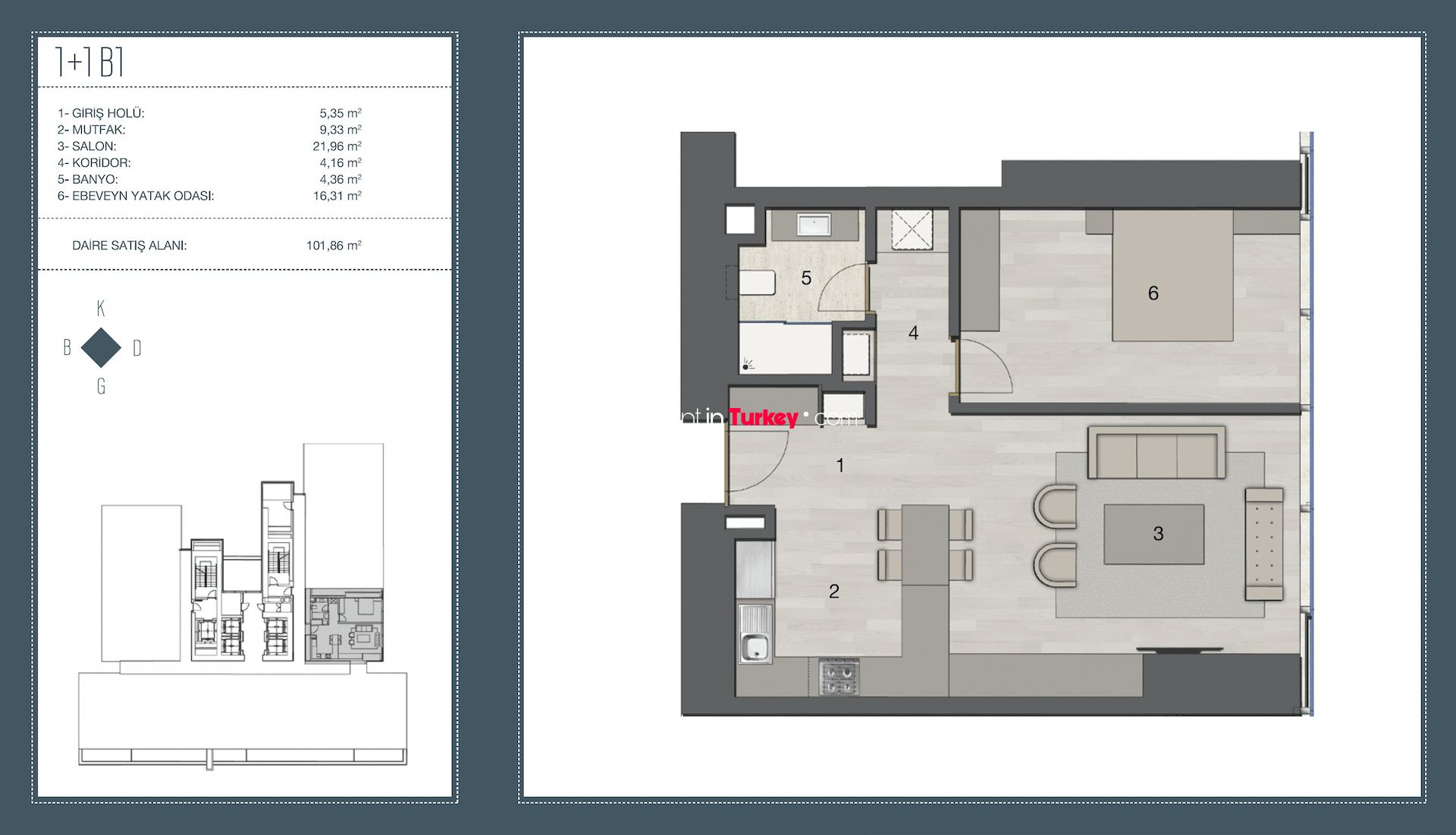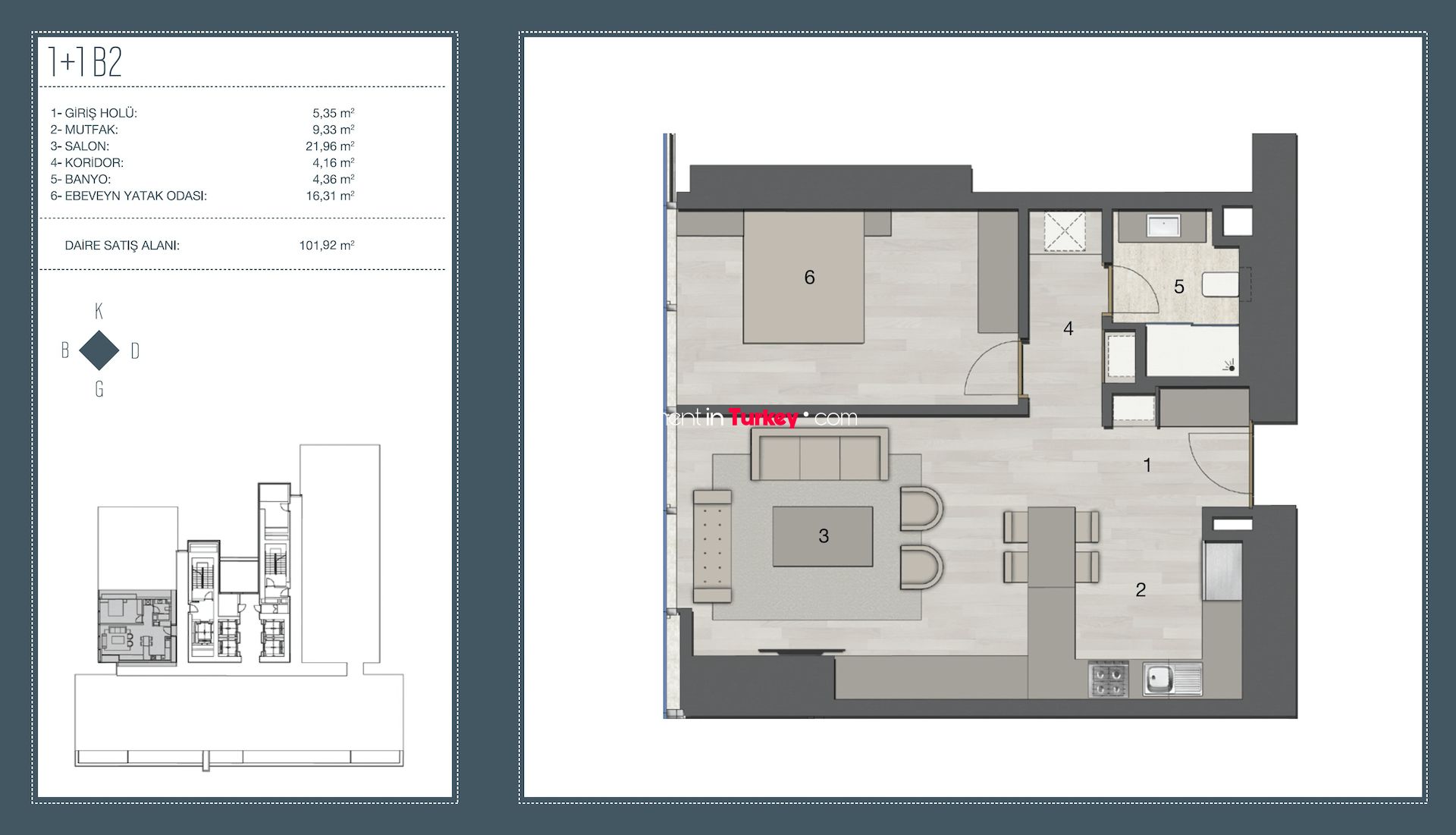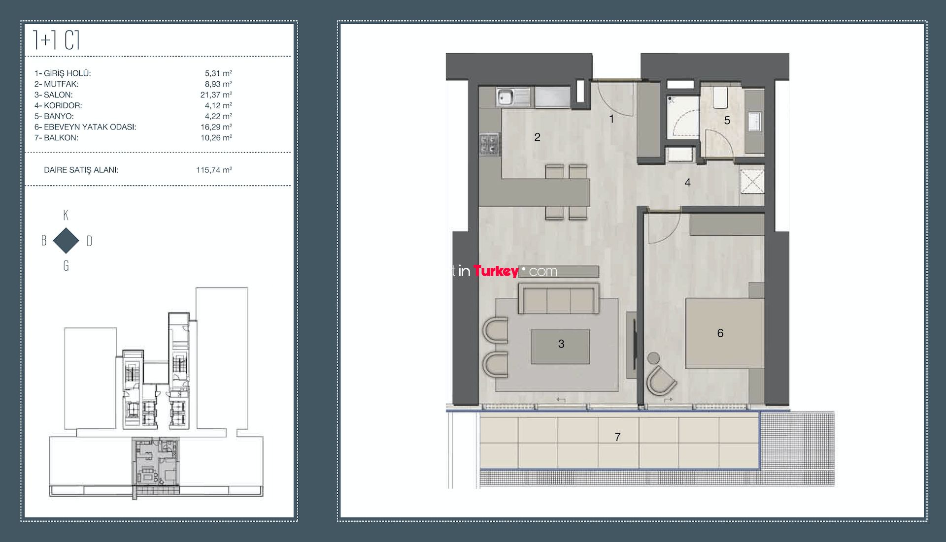 The Project has flats of different sizes; 1+1, 2+1, 3+1, and 4+1.