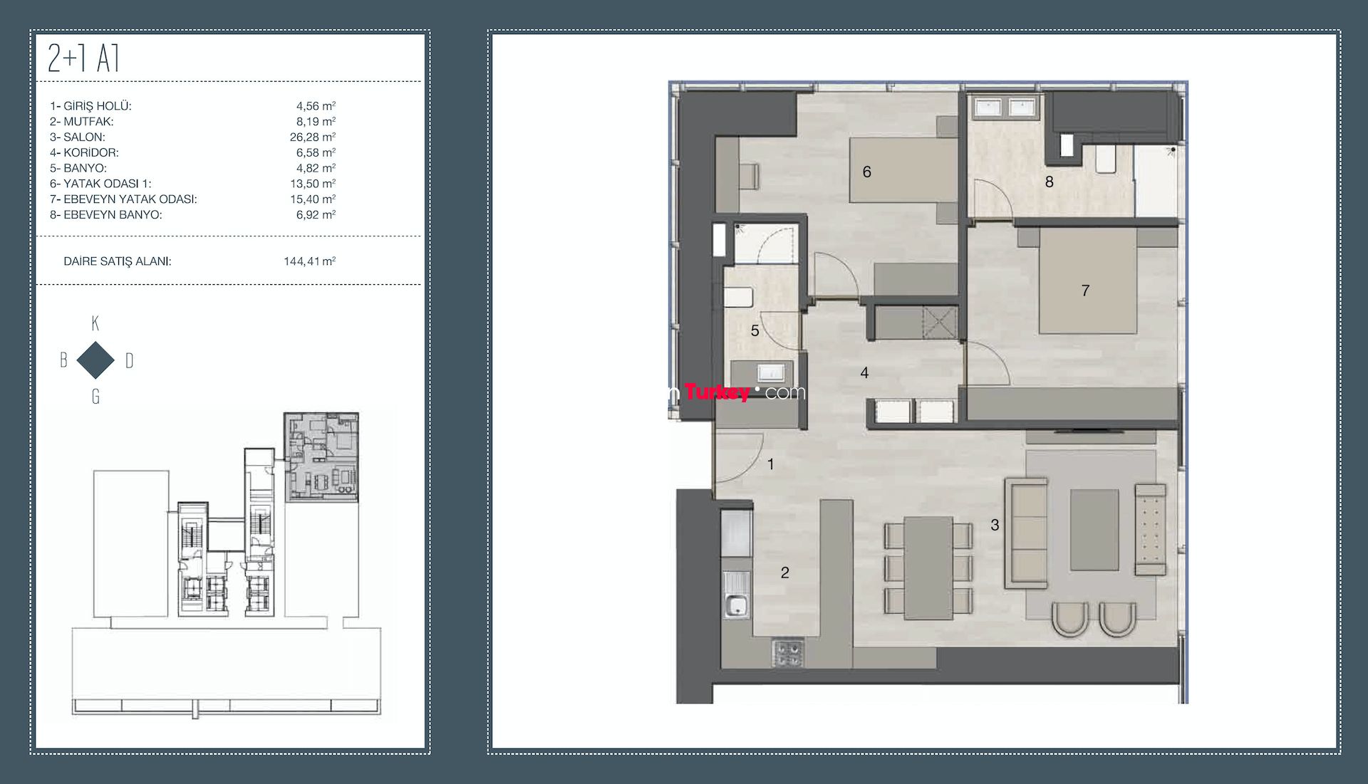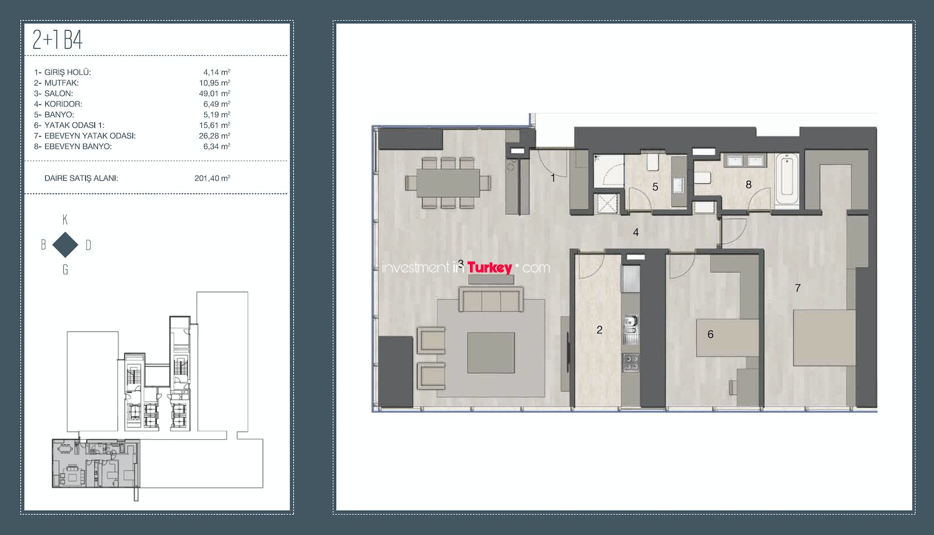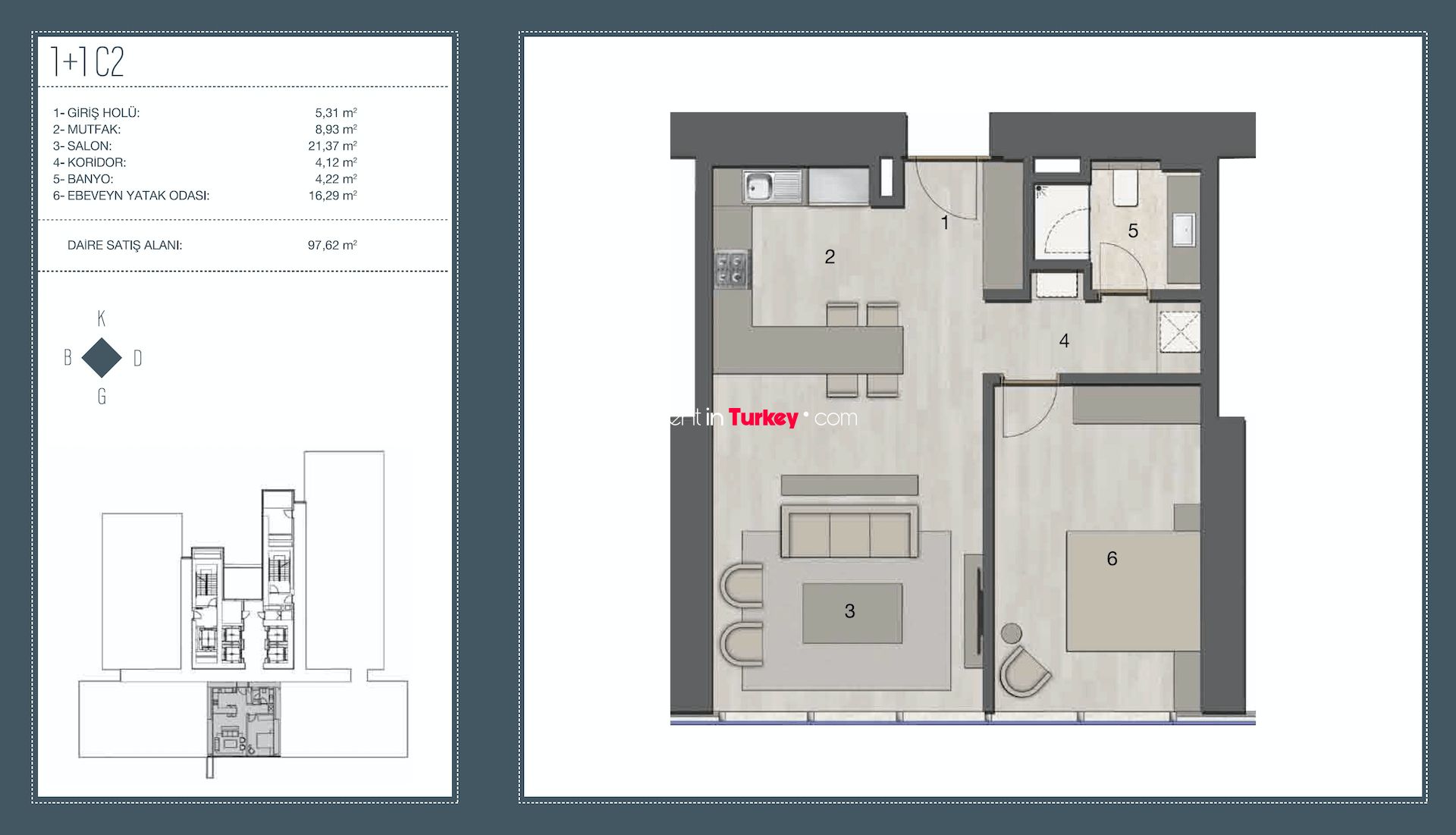 The Project has flats of different sizes; 1+1, 2+1, 3+1, and 4+1.